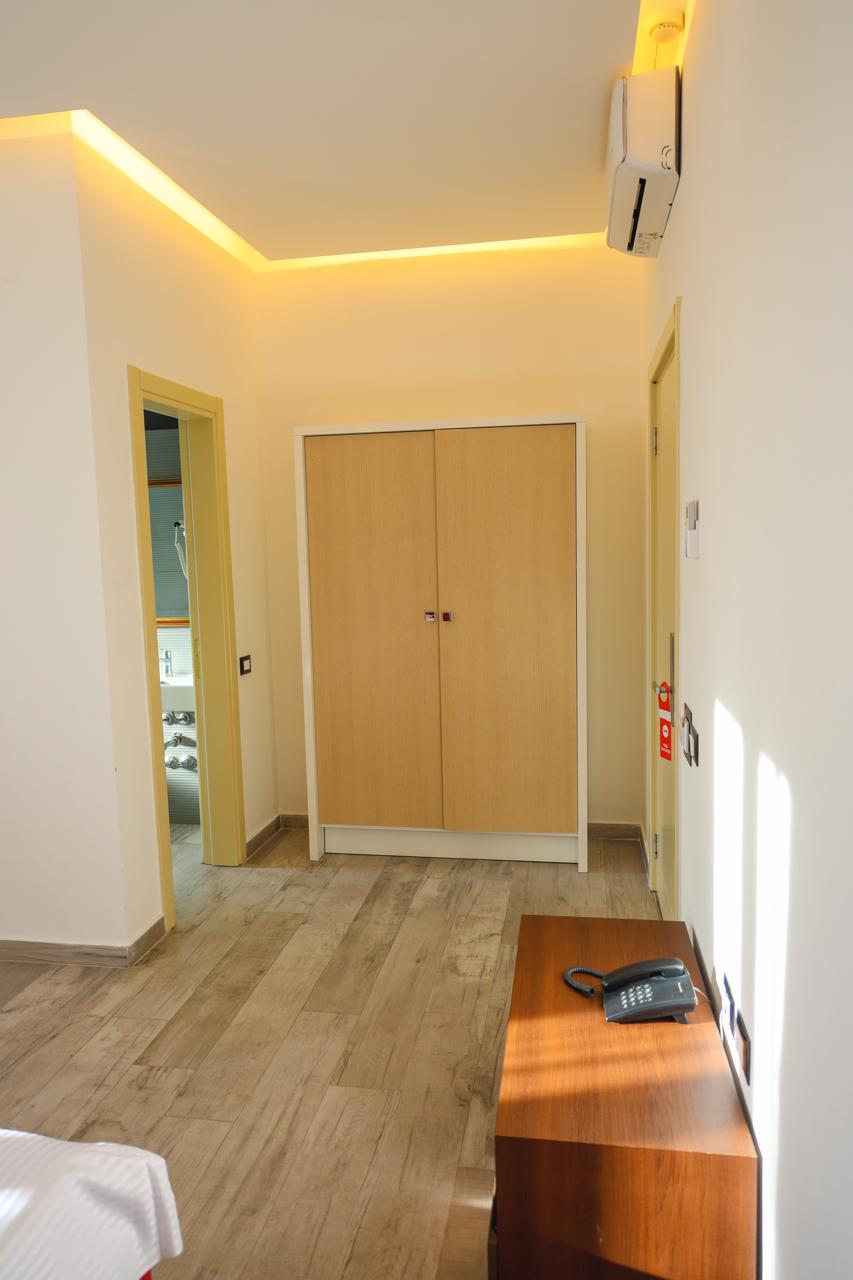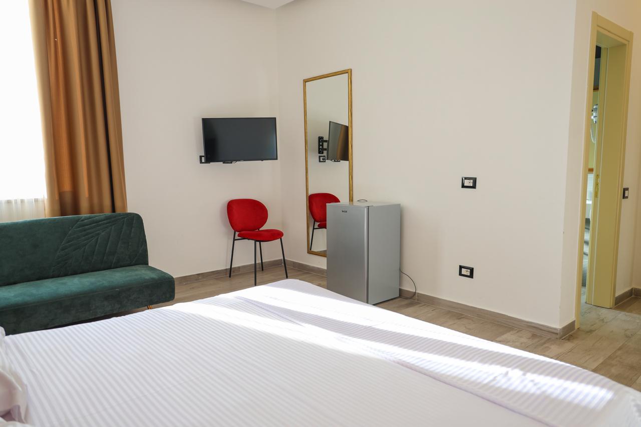 đŹ Akomodimi: Hoteli ofron dhoma komode dyshe, treshe dhe familjare, tĂ« pajisura me ballkone qĂ« ofrojnĂ« pamje nga deti ose zona pĂ«rreth. TĂ« gjitha dhomat janĂ« tĂ« klimatizuara dhe tĂ« mobiluara me stil modern. Ădo dhomĂ« pĂ«rfshin banjo private, TV, minibar dhe WiFi falas.