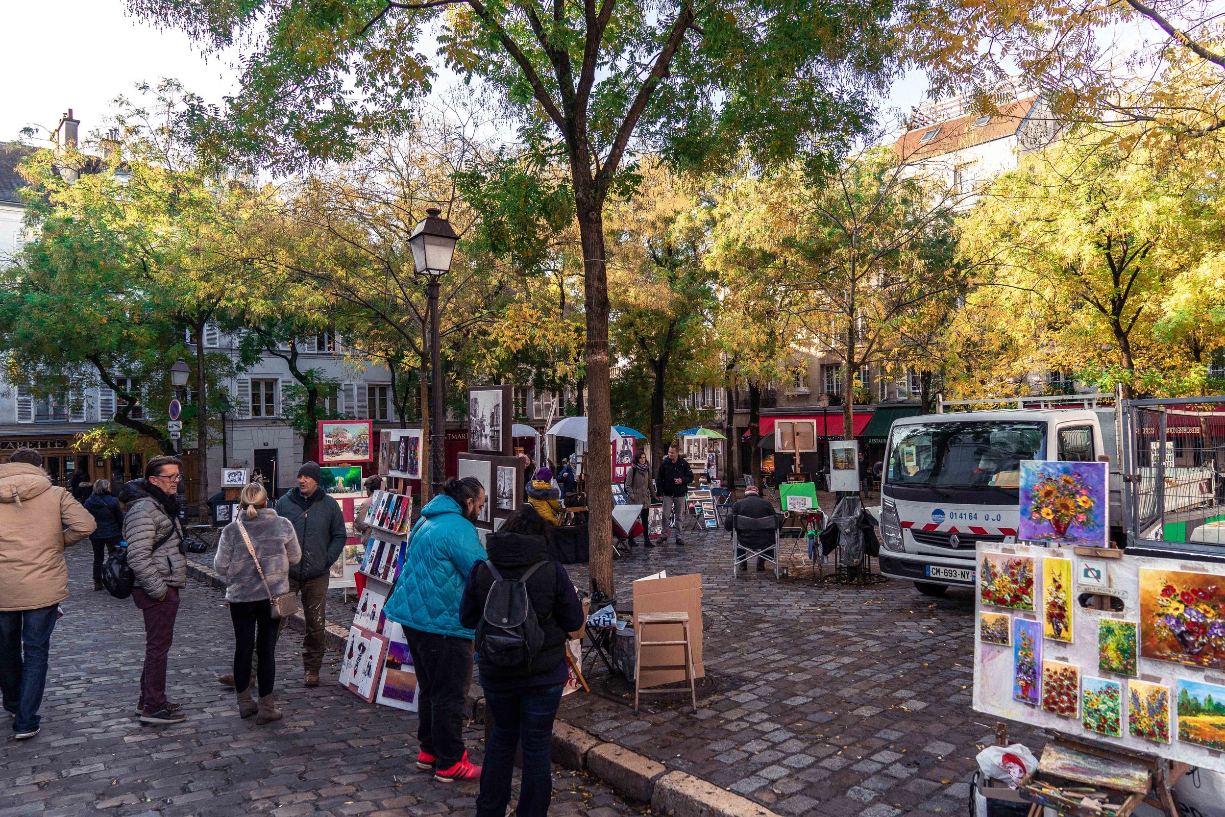 Ekskursioni vazhdon drejt Montmartre, me vizitë në Kishën e Zemrës së Shenjtë (Sacré-Cœur) dhe sheshin e artistëve (Place du Tertre).