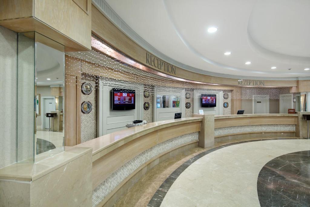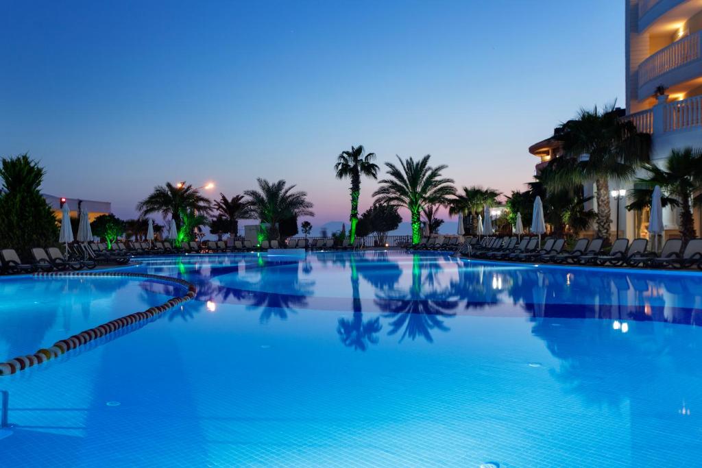 🍽 Shërbimi: Hoteli funksionon me konceptin All-Inclusive, duke përfshirë mëngjesin, drekën, darkën dhe ushqime të lehta gjatë ditës. Mysafirët mund të shijojnë një shumëllojshmëri ushqimesh turke dhe ndërkombëtare, si dhe pije freskuese dhe alkoolike të përzgjedhura gjatë gjithë ditës.